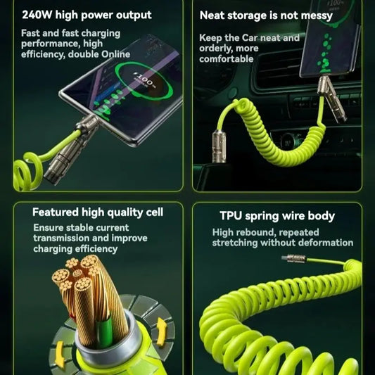 WEKOME 240W 7-in-1 Spring Fast Charging Data Cable for iPhone 15/16 & Android